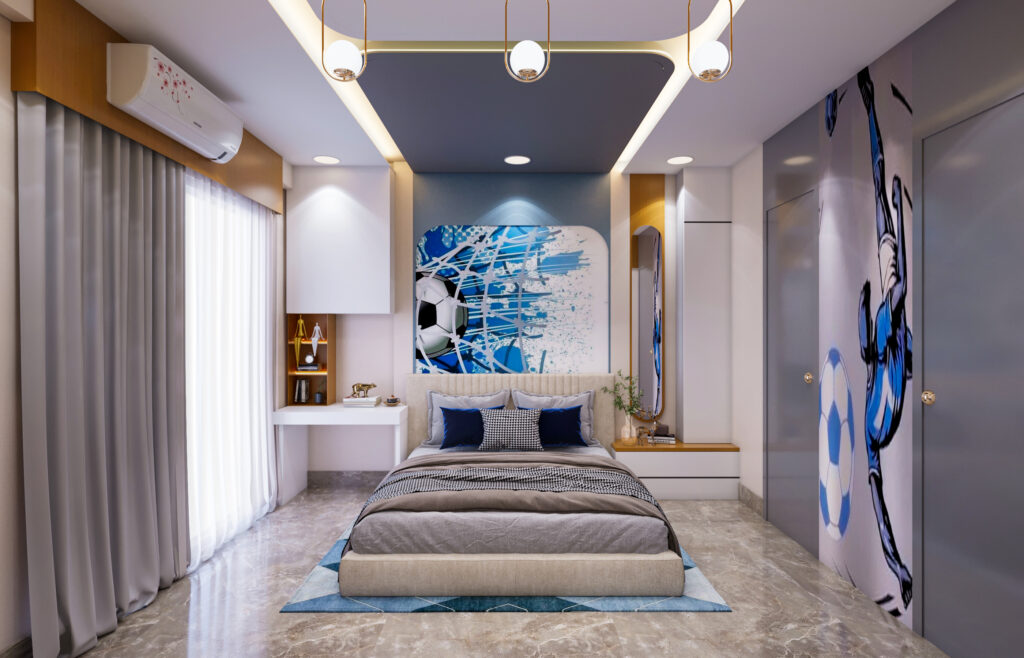 The kids’ room is both playful and functional, while the kitchen combines classic style with modern sustainability practices. Unique features like the 150-year-old Chettinad-style wooden door and traditional Rajasthani plastering techniques underscore the project’s commitment to preserving heritage while embracing modern ecological practices. This project is a testament to the art of sustainable design, offering a visually stunning and environmentally responsible living space.